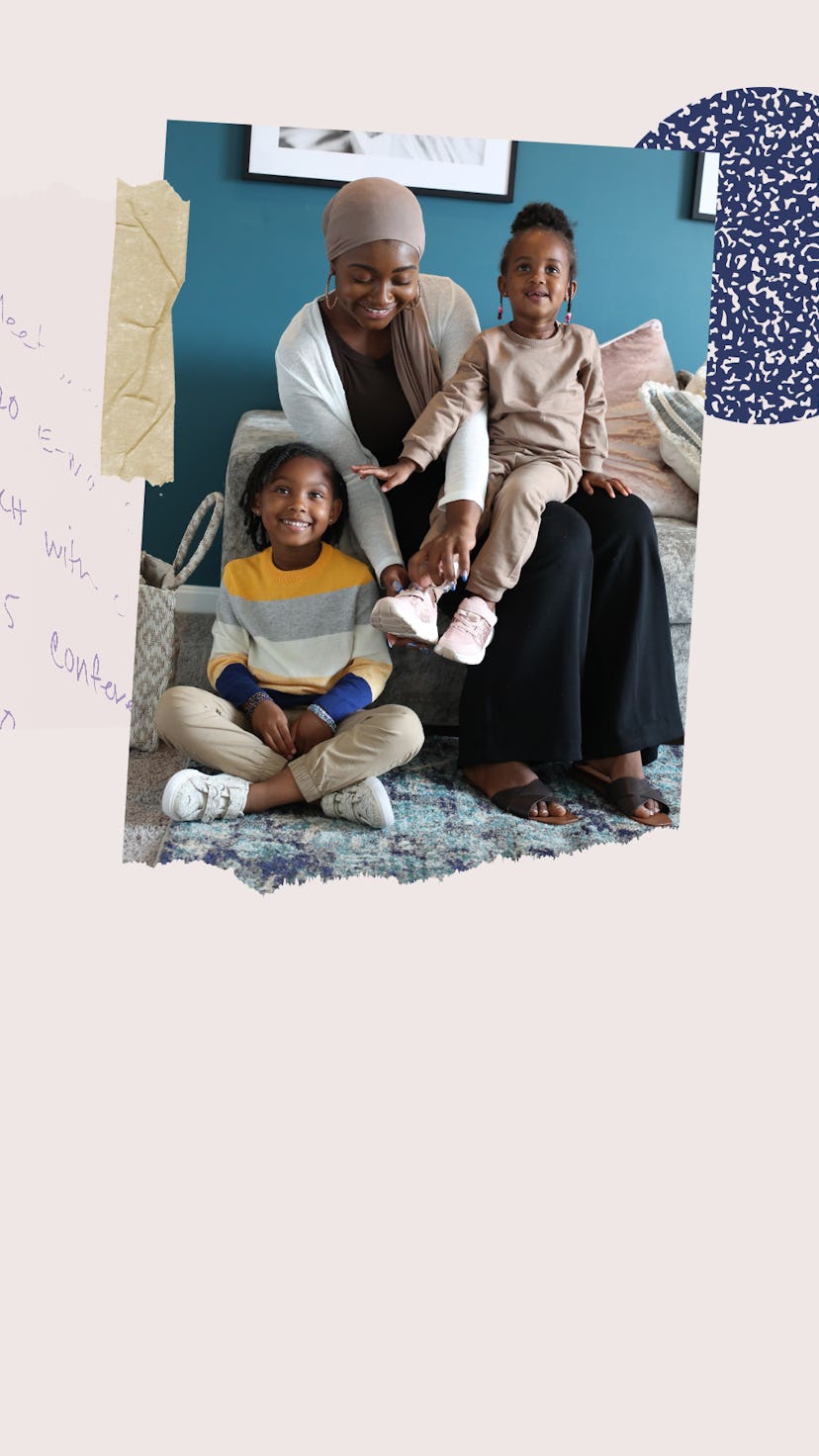 For Balde, comfort is a common thread between how she and her girls dress. “They’re in school all day and they have to be active, whether it’s recess or running around from activity to activity, so they need clothes that will move with them,” she says. Fatima gravitated towards a yellow, blue, gray, and white striped sweater and khakis, while Diari chose a taupe sweatsuit and pink sneakers. Both outfits are representative of their style preferences, but also allow them to, as Balde says, “have fun without worrying about their clothes.”