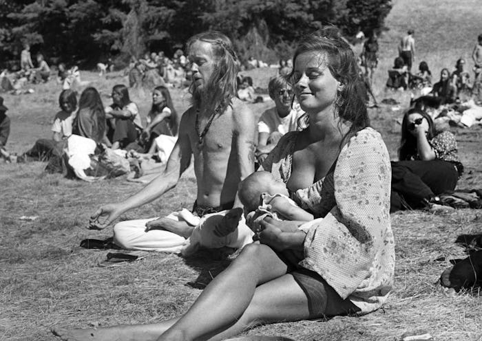 This black-and-white photo was taken in September 1969 and shows a mother nursing her baby during a Monday Night Class picnic at Mt. Tamalpais in San Francisco, California. It's so lovely to see her looking so happy and peaceful with no one else around her giving her a second glance.