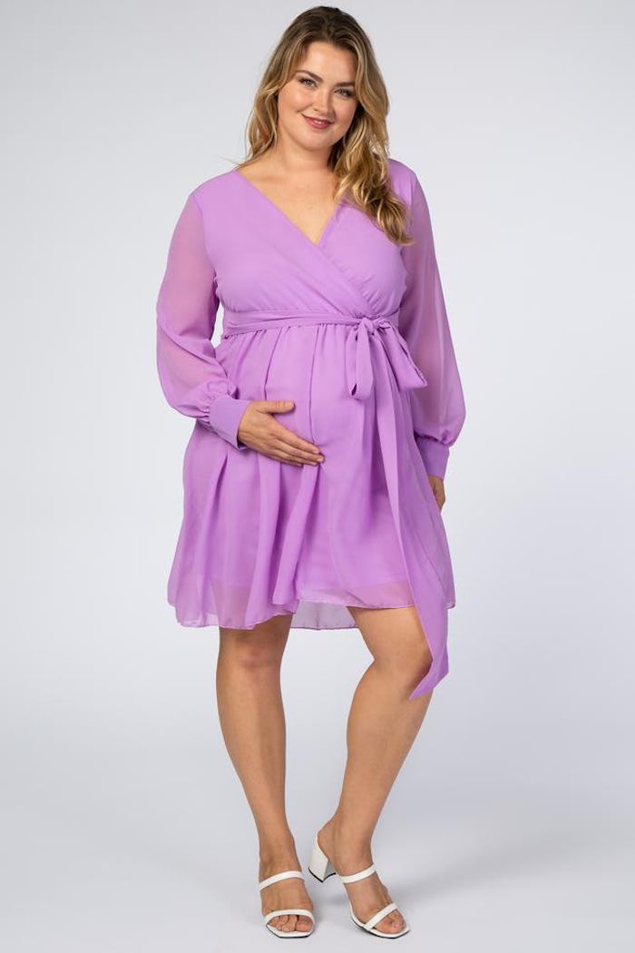This dress would be perfect for a beach wedding, or even a spring/summer baby shower. The dots are so sweet, and the wrap makes it flirty and fun. Your bump will proudly be on display, and you’ll look like a million bucks.
